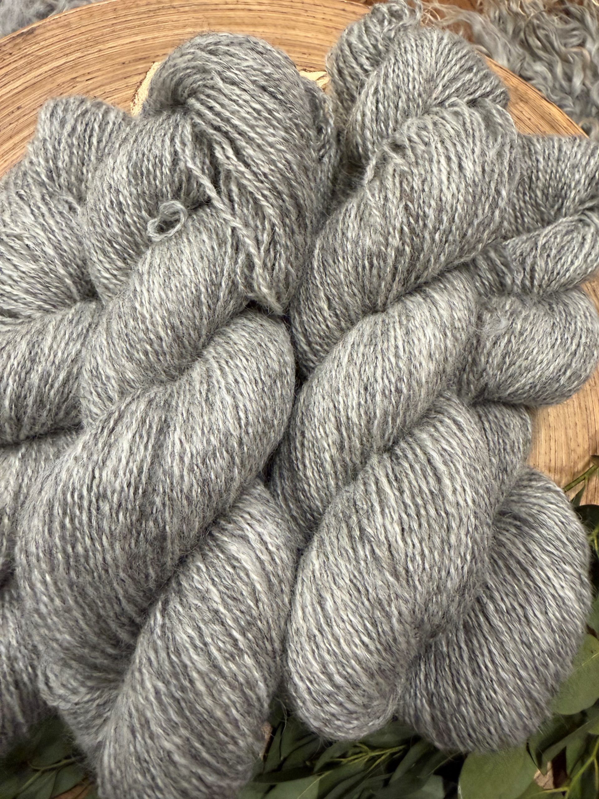 De losse wol heeft Annemarie opgestuurd naar een ambachtelijke spinnerij in Denemarken. Zij zijn gespecialiseerd in het verwerken van Gotlandwol. Aan de wol wordt Merino toegevoegd voor een betere verwerkbaarheid. Het resultaat is een prachtige breiwol met de unieke grijs/zilveren kleur.