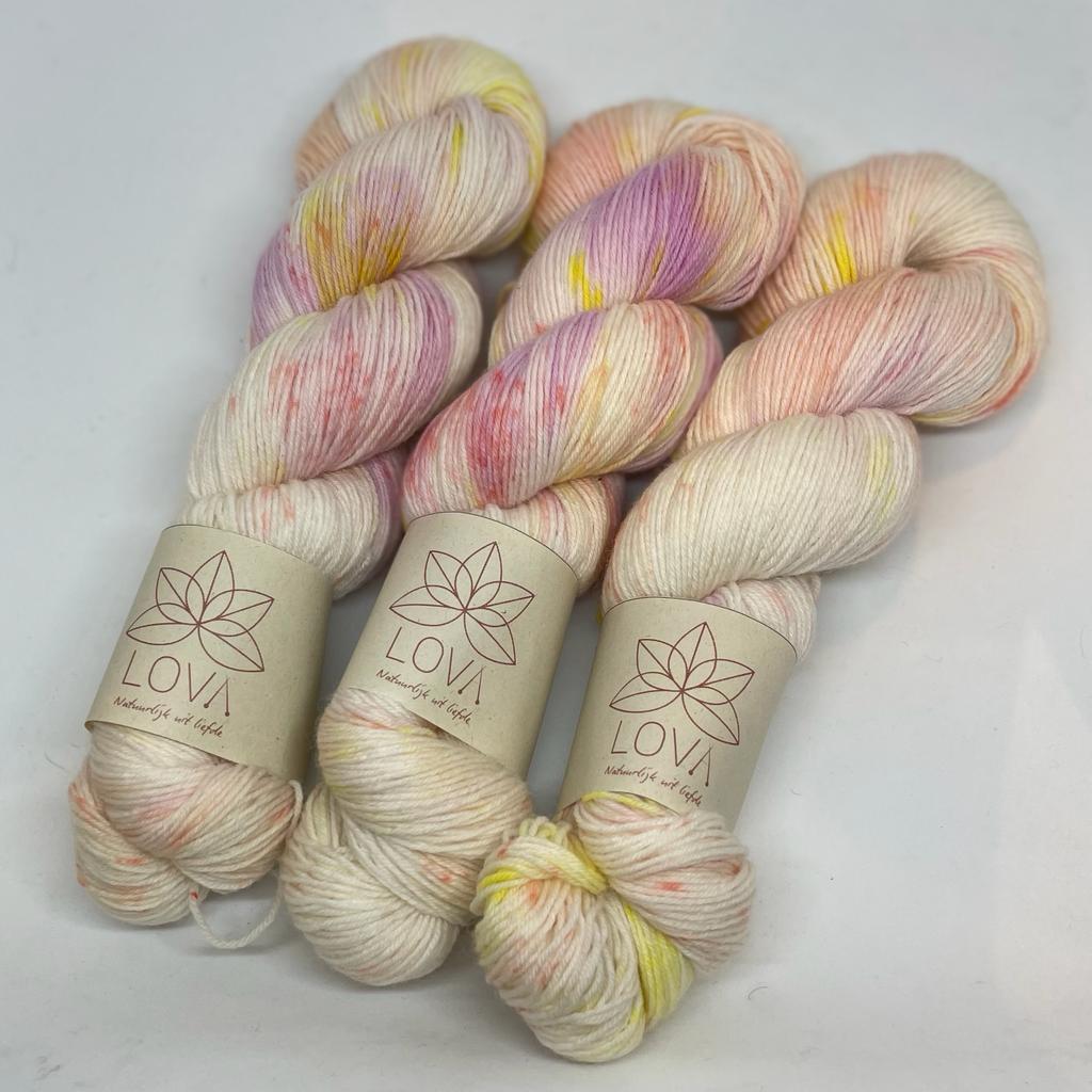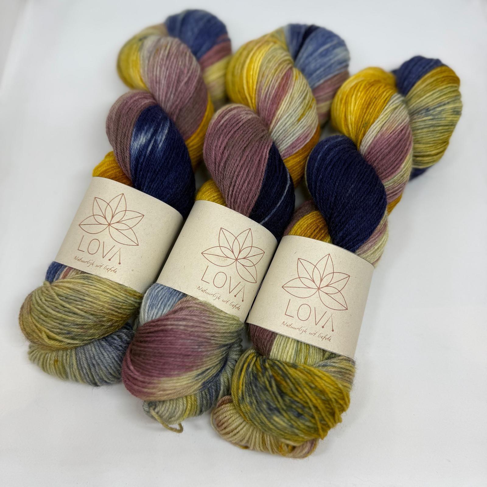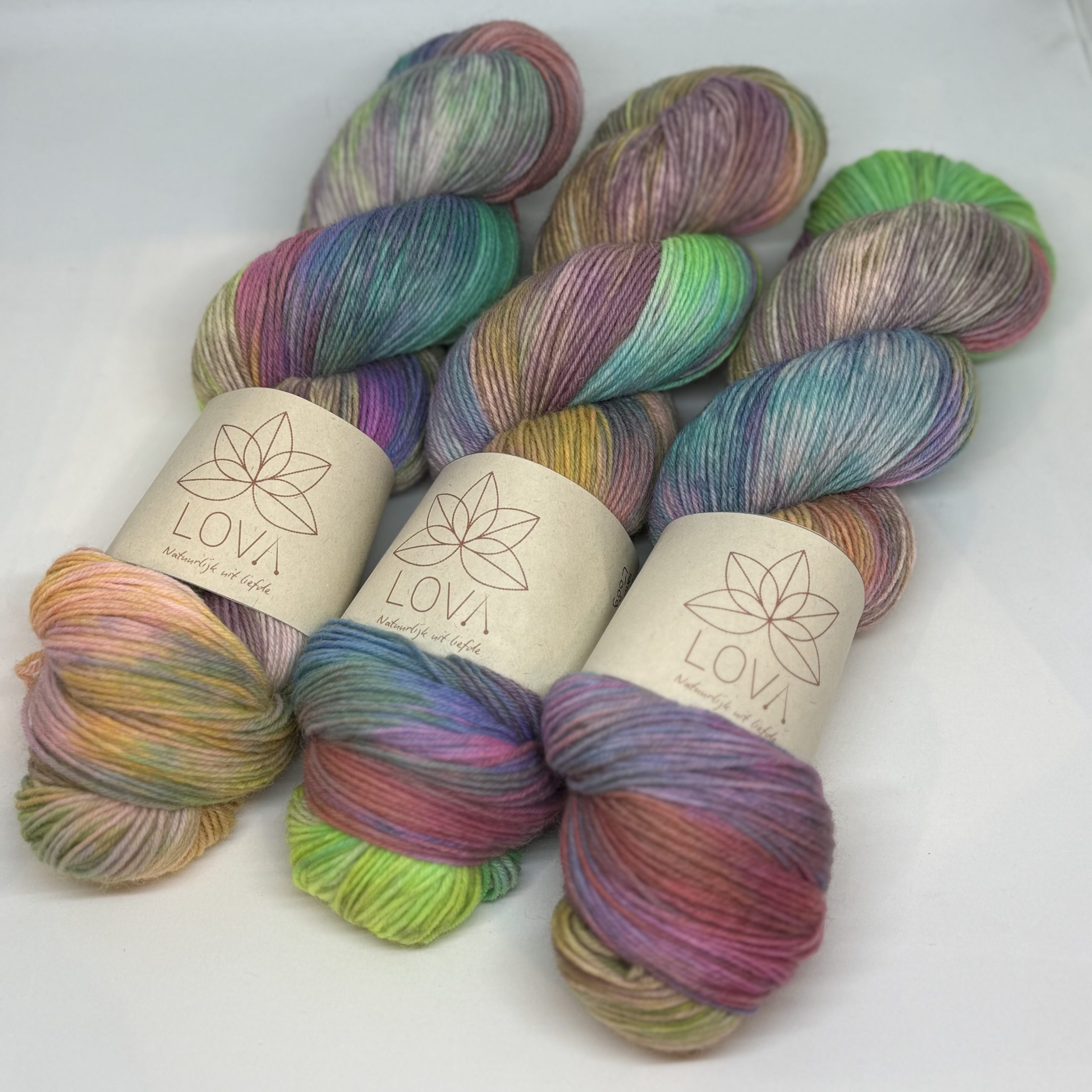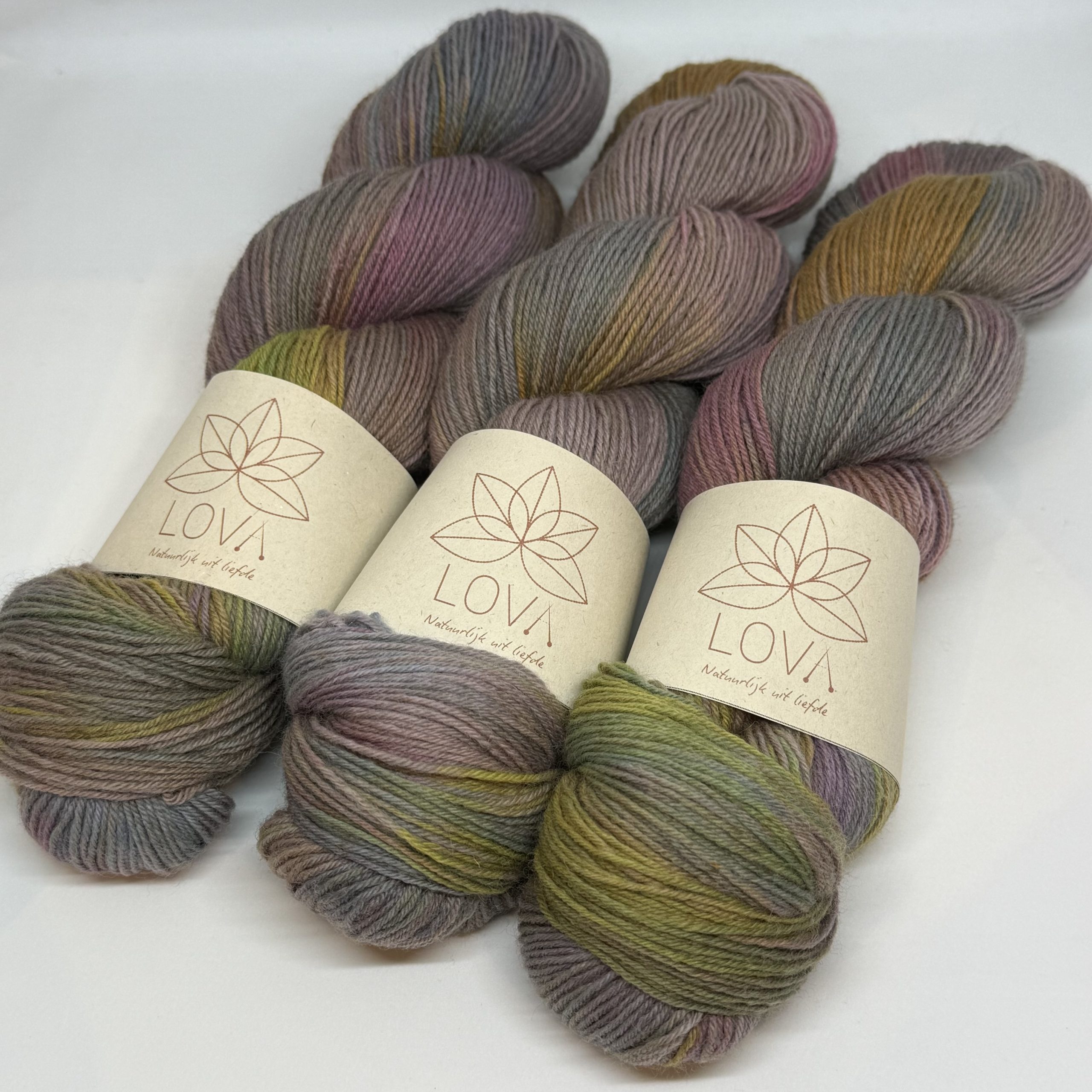 Duurzaamheid, kwaliteit en diervriendelijkheid vindt LOVA erg belangrijk. De basis van het garen is dan ook een GOTS wol gemengd met een biologisch afbreekbaar polyamide.