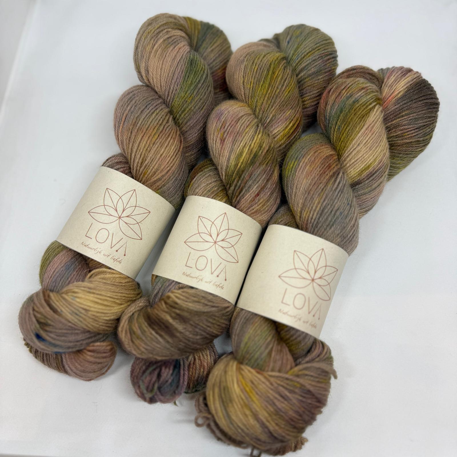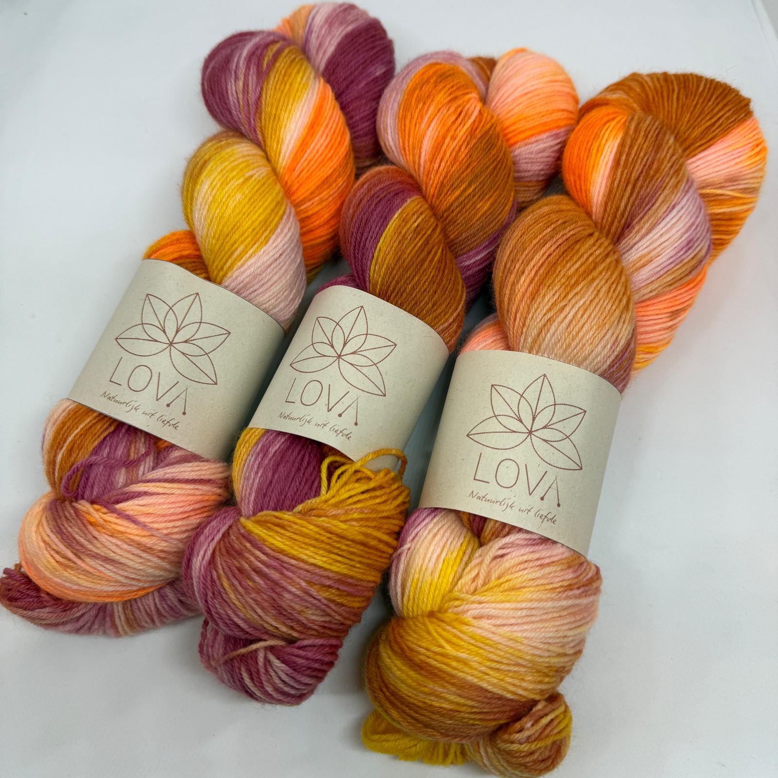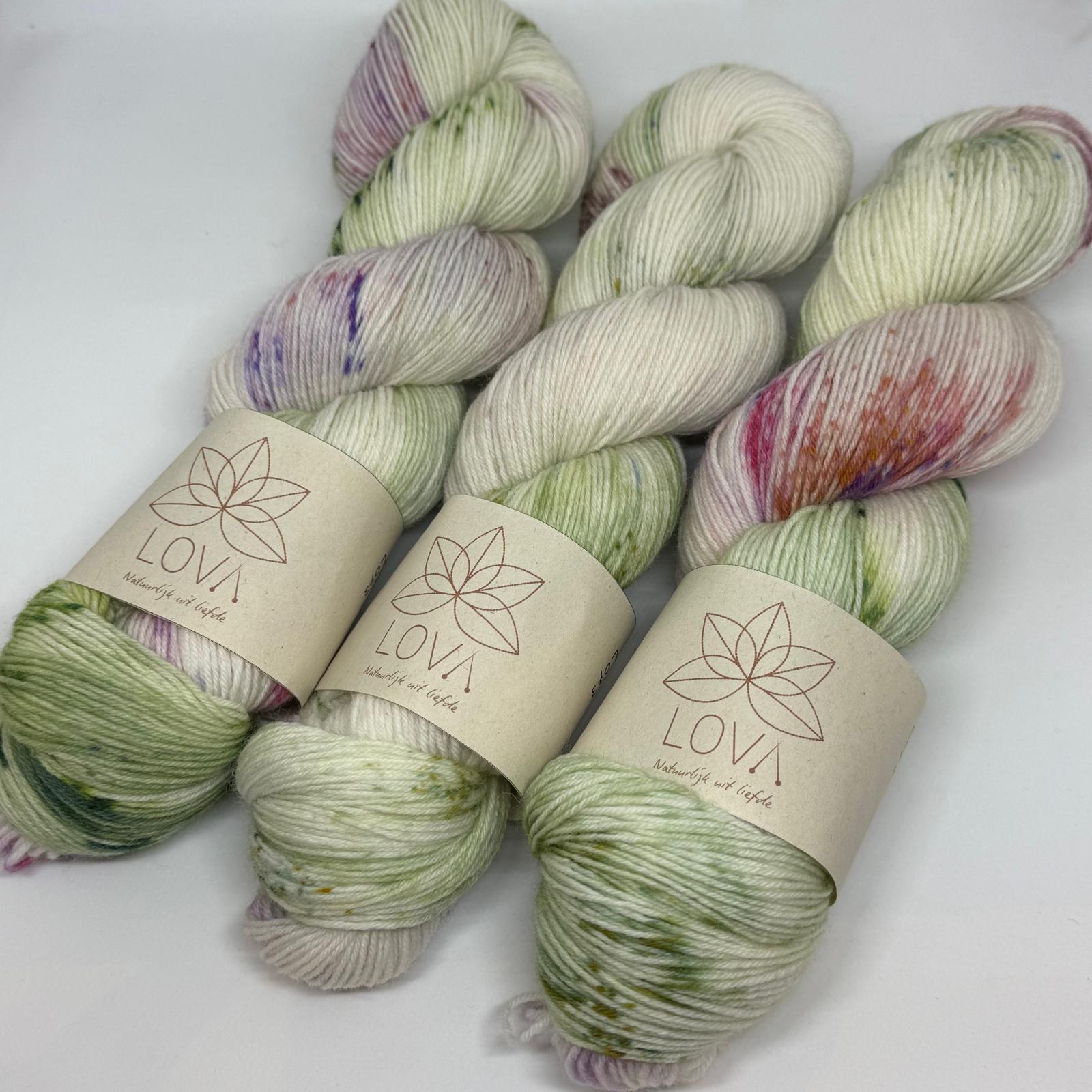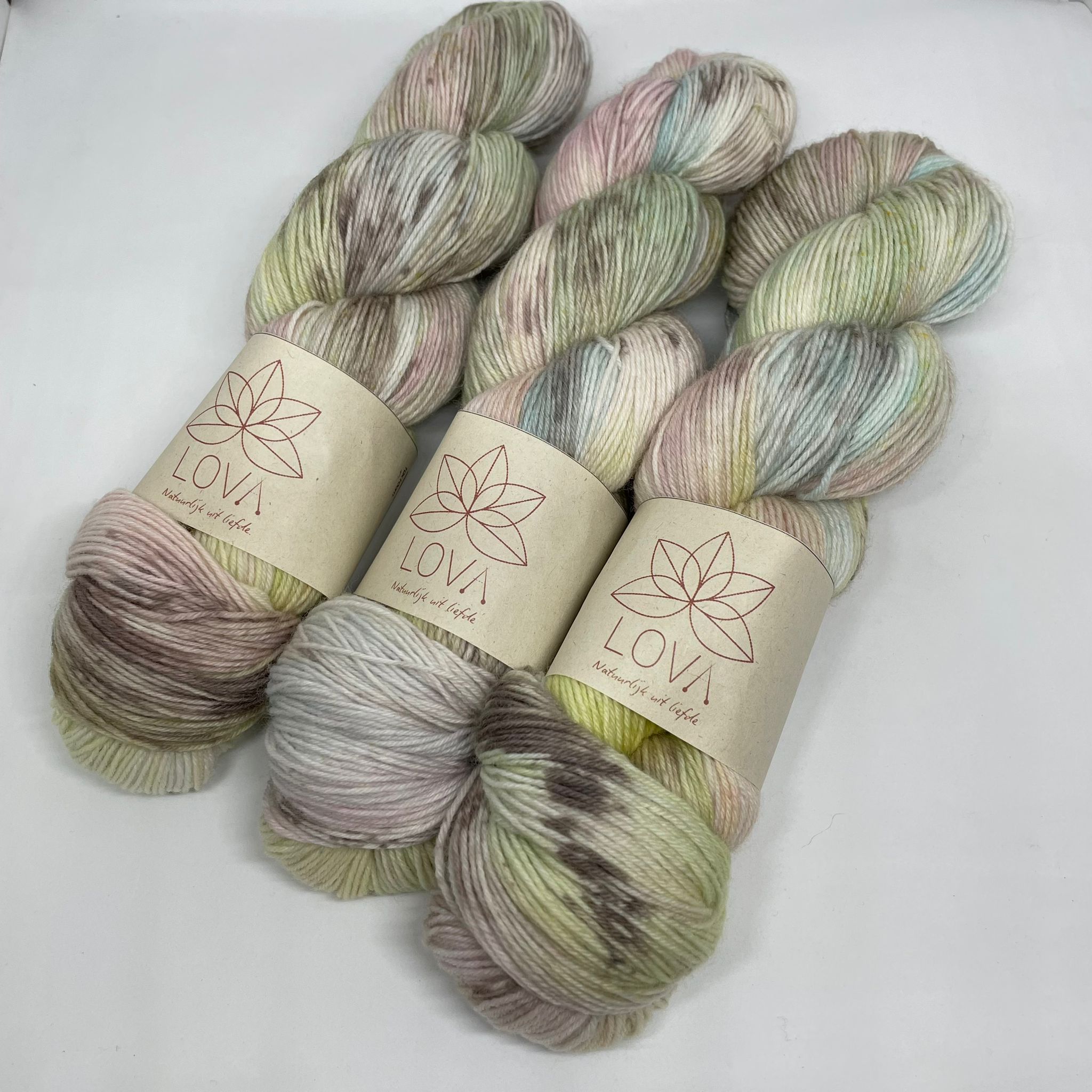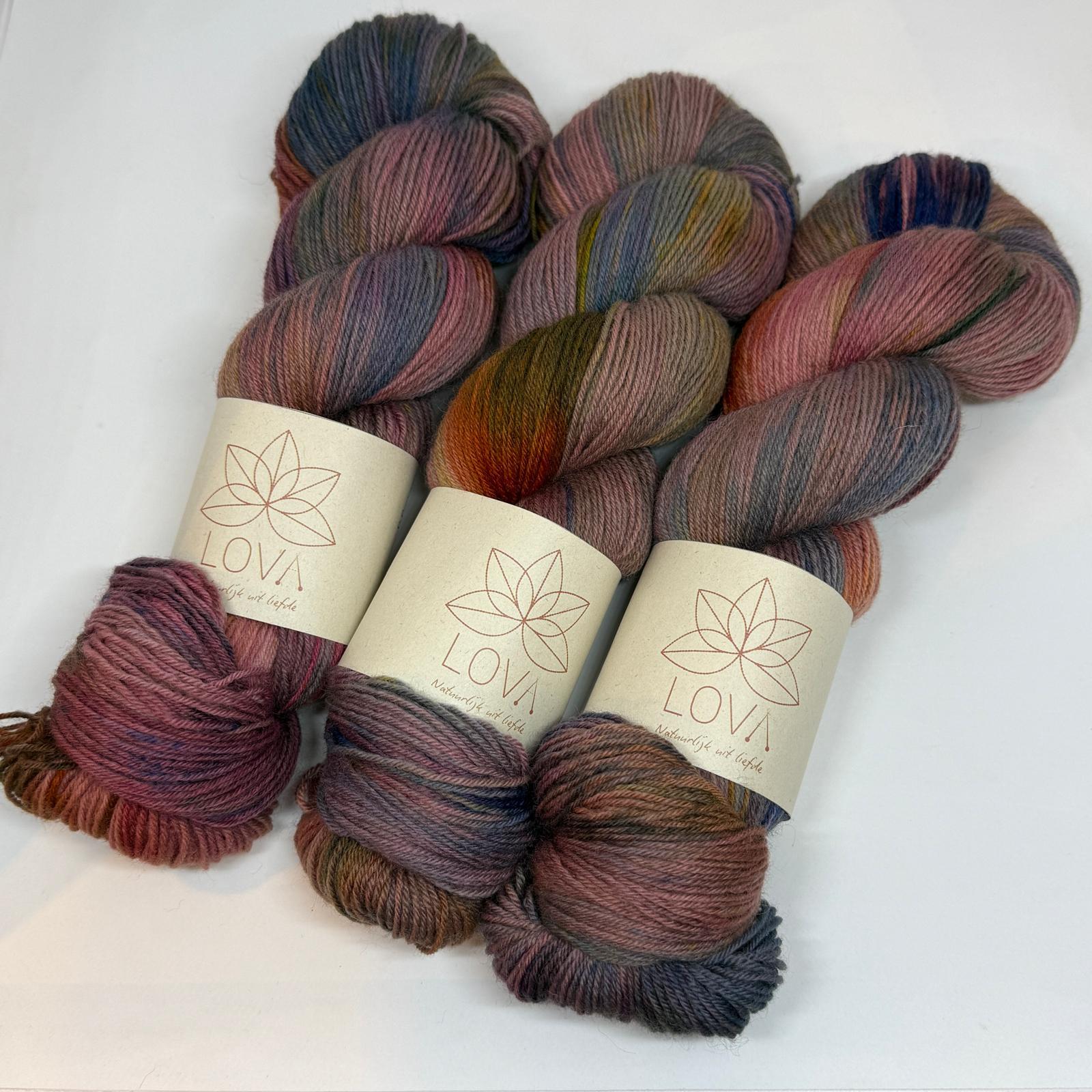 Duurzaamheid, kwaliteit en diervriendelijkheid vindt LOVA erg belangrijk. De basis van het garen is dan ook een GOTS wol gemengd met een biologisch afbreekbaar polyamide.