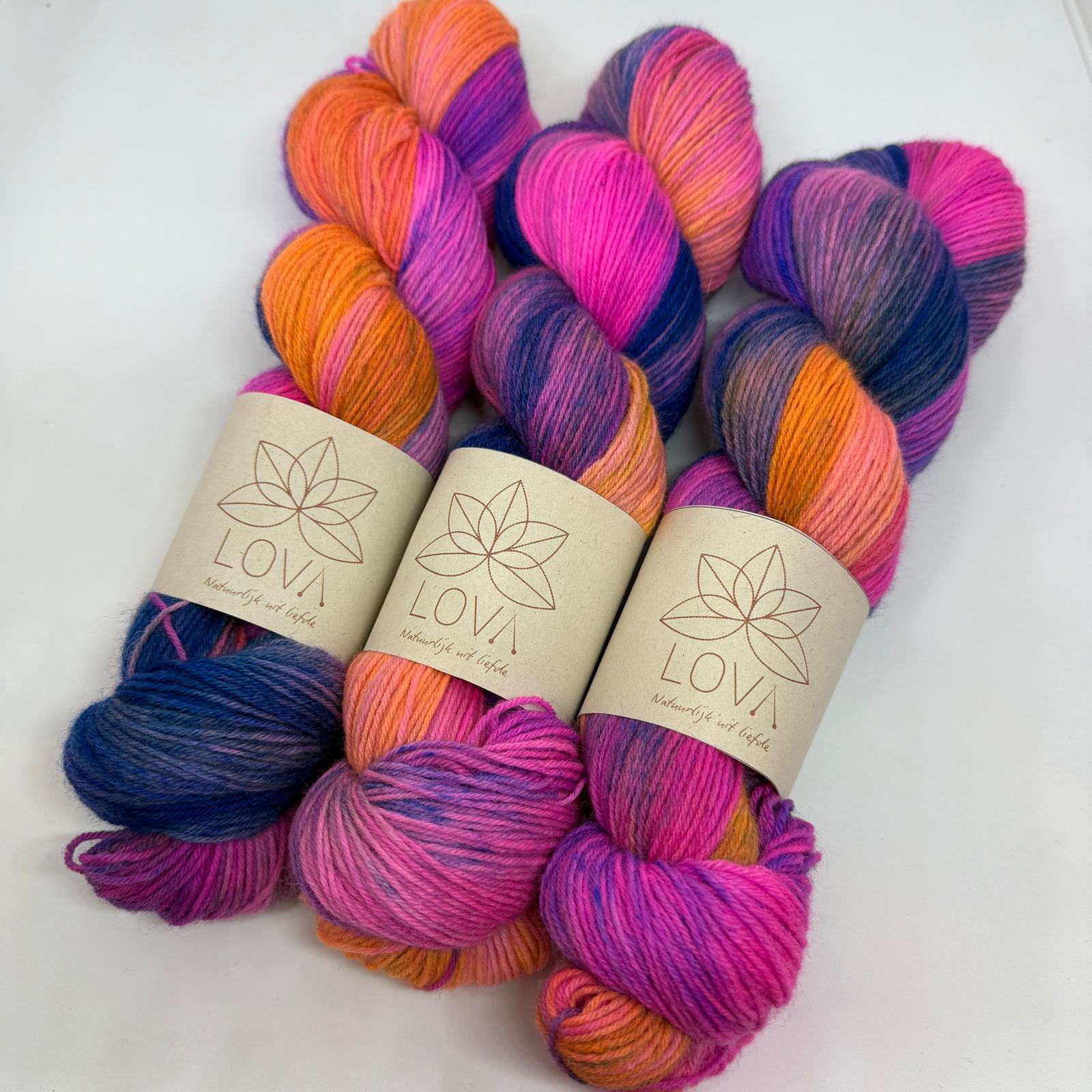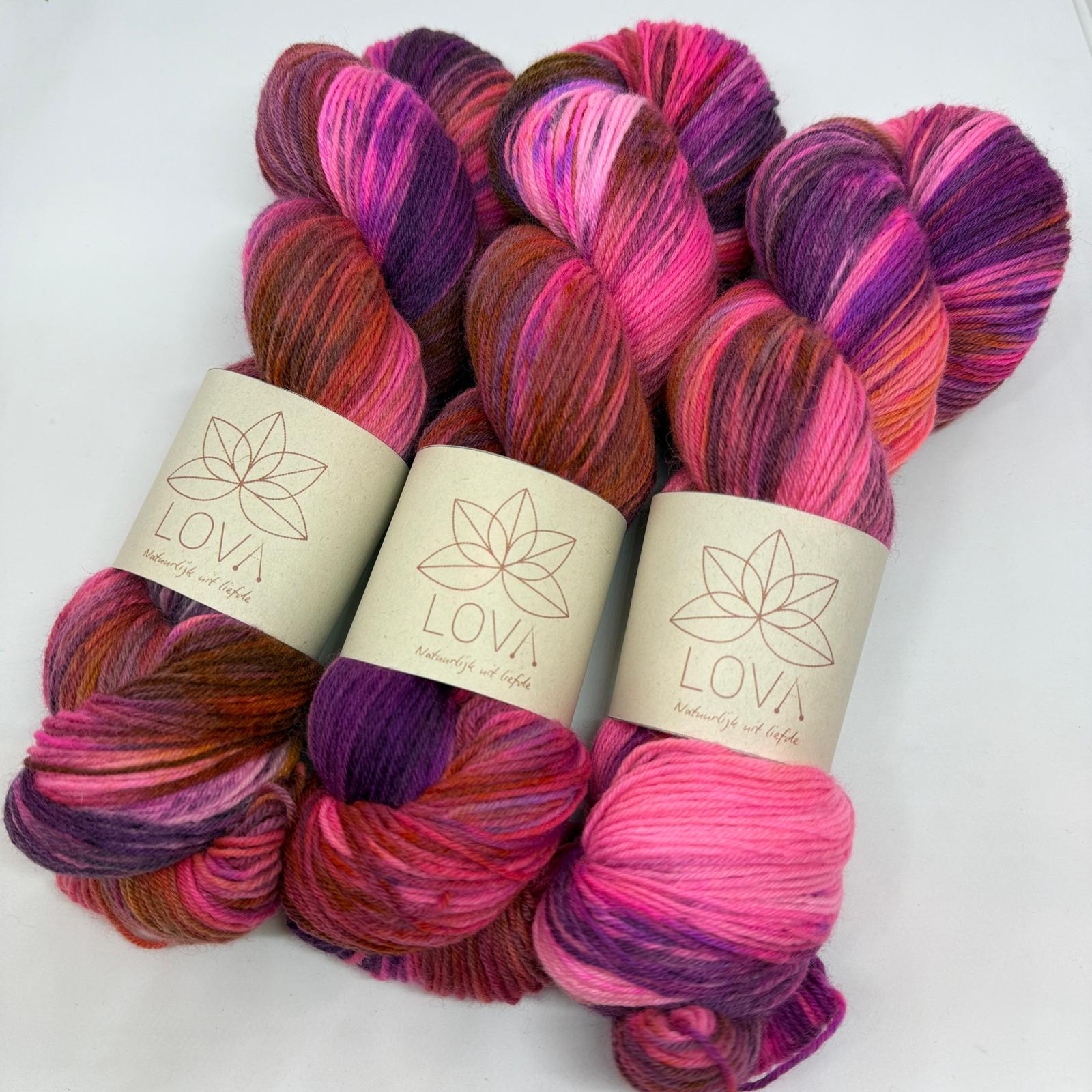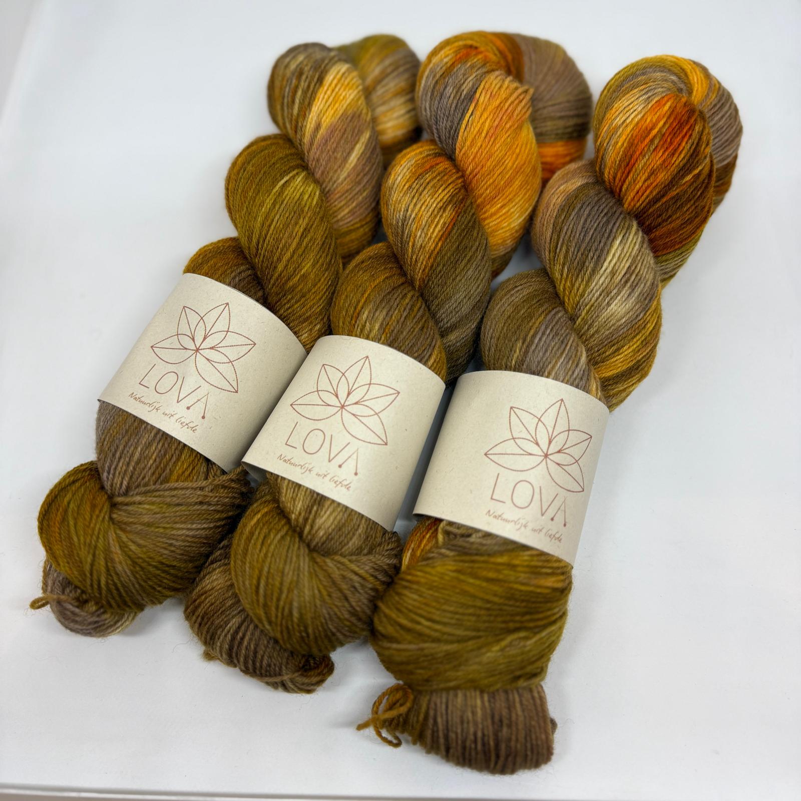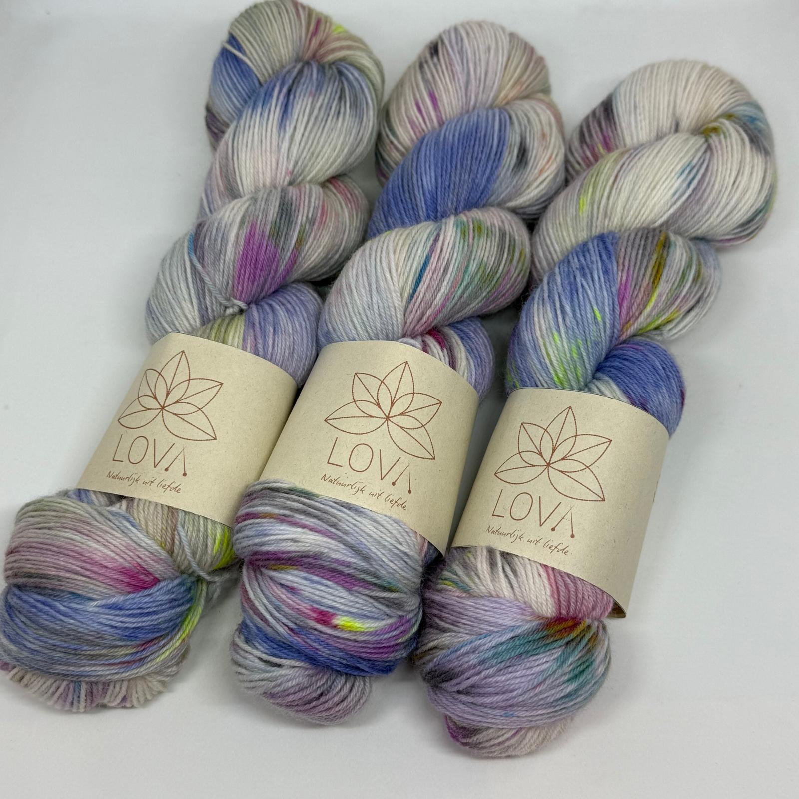 Duurzaamheid, kwaliteit en diervriendelijkheid vindt LOVA erg belangrijk. De basis van het garen is dan ook een GOTS wol gemengd met een biologisch afbreekbaar polyamide.
